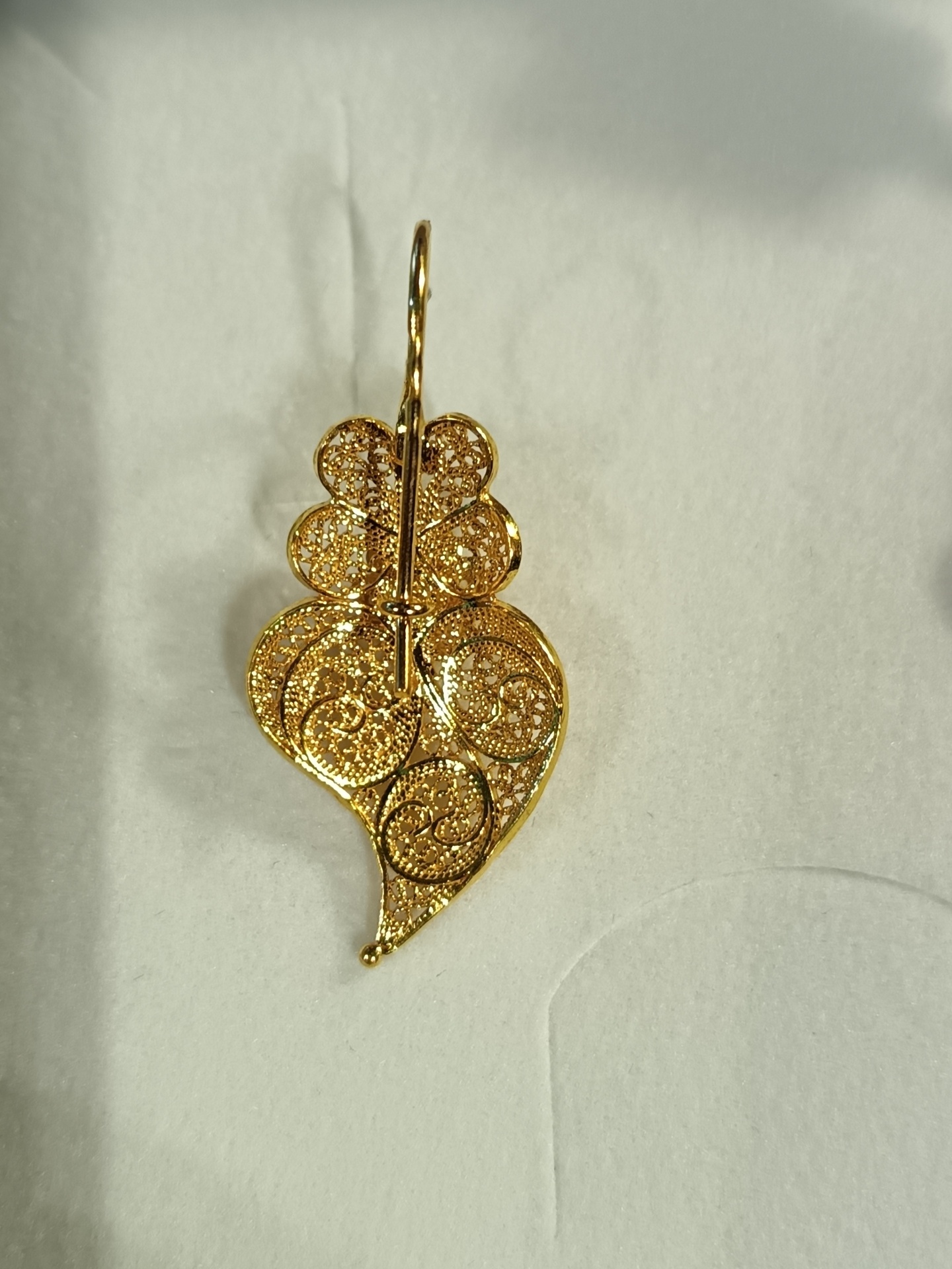 Par de brincos ouro 19,2kt, produzidos manualmente em filigrana.